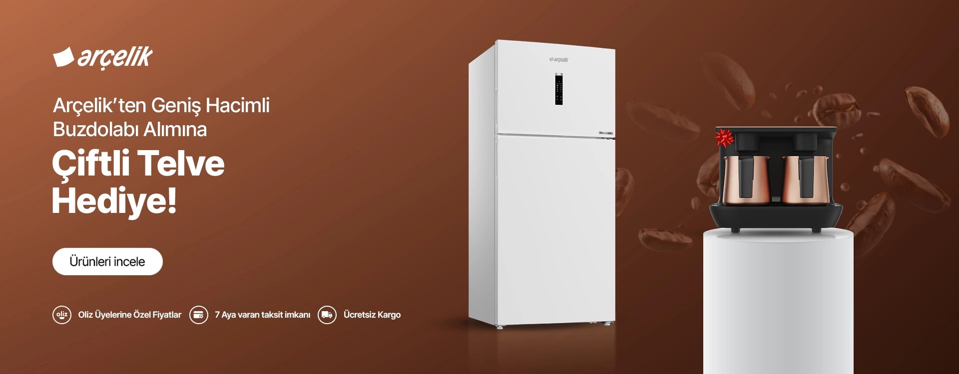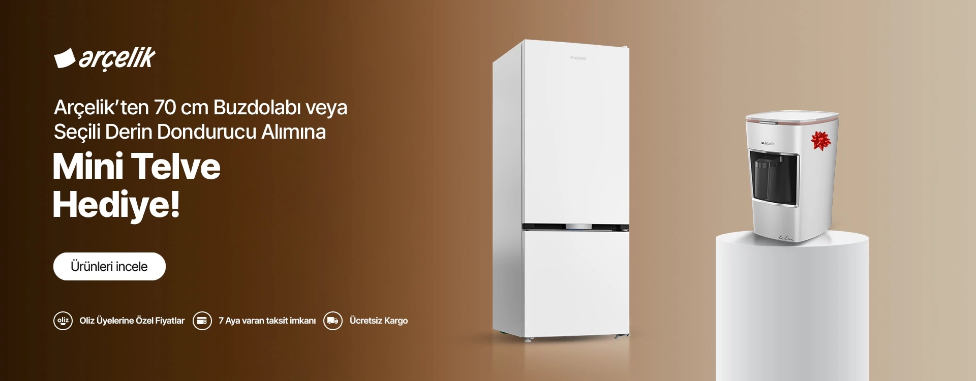Kampanyalar Sürpriz İndirimleri Keşfet! Geniş Hacimli Buzdolabı Kampanyası Geniş Hacimli Buzdolabı Alımına Çiftli Telve Hediye! Seçili Salon Tipi Klima Alımına Çay & FiltreKahve Makinesi Hediye! 70 cm Buzdolabı ve Seçili Derin Dondurucu Kampanyası Alımına K 3300 Beyaz Telve Makinesi Hediye!